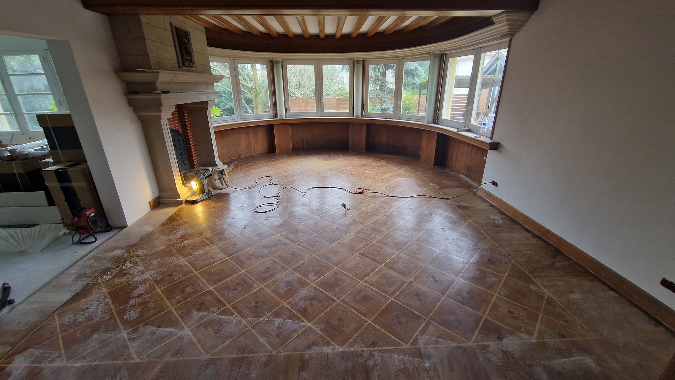 Rénovation avec ponçage et vitrification d'un parquet en marqueterie chez un particulier