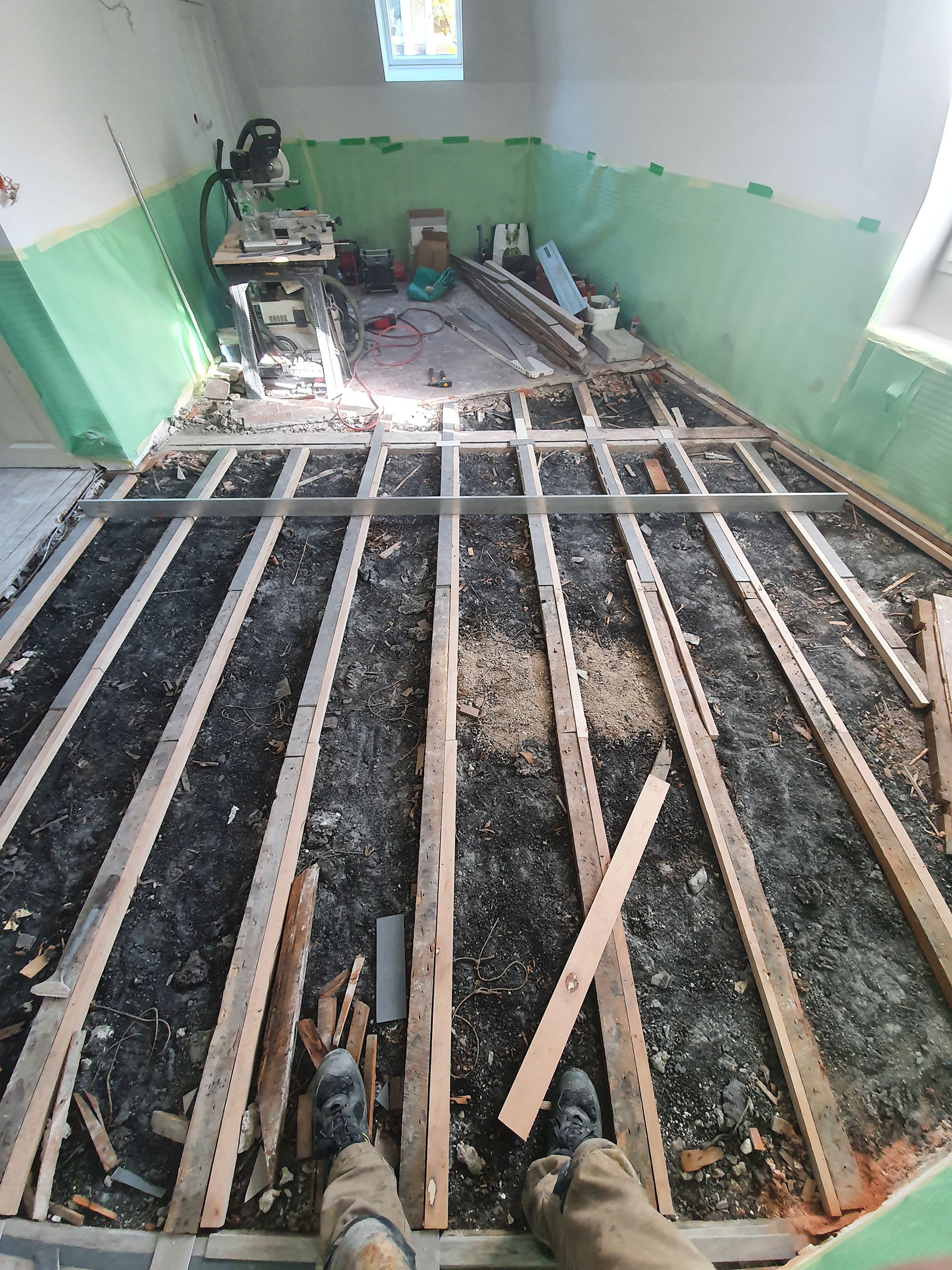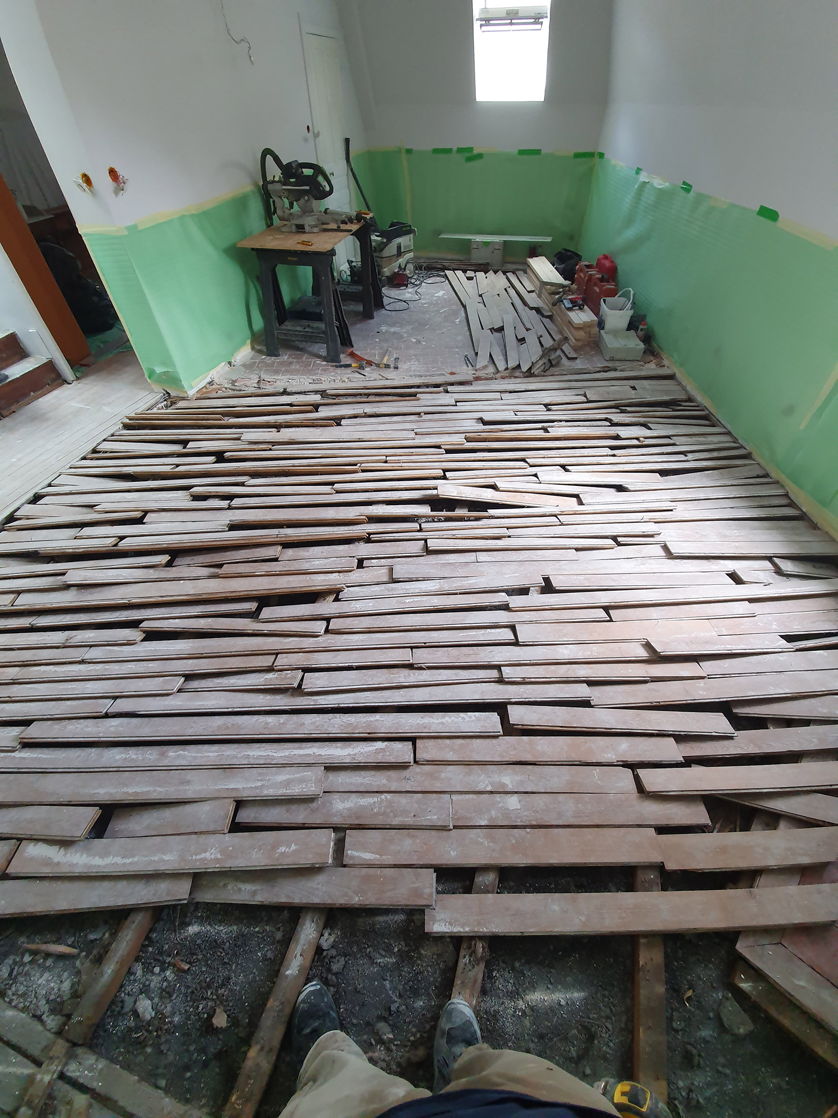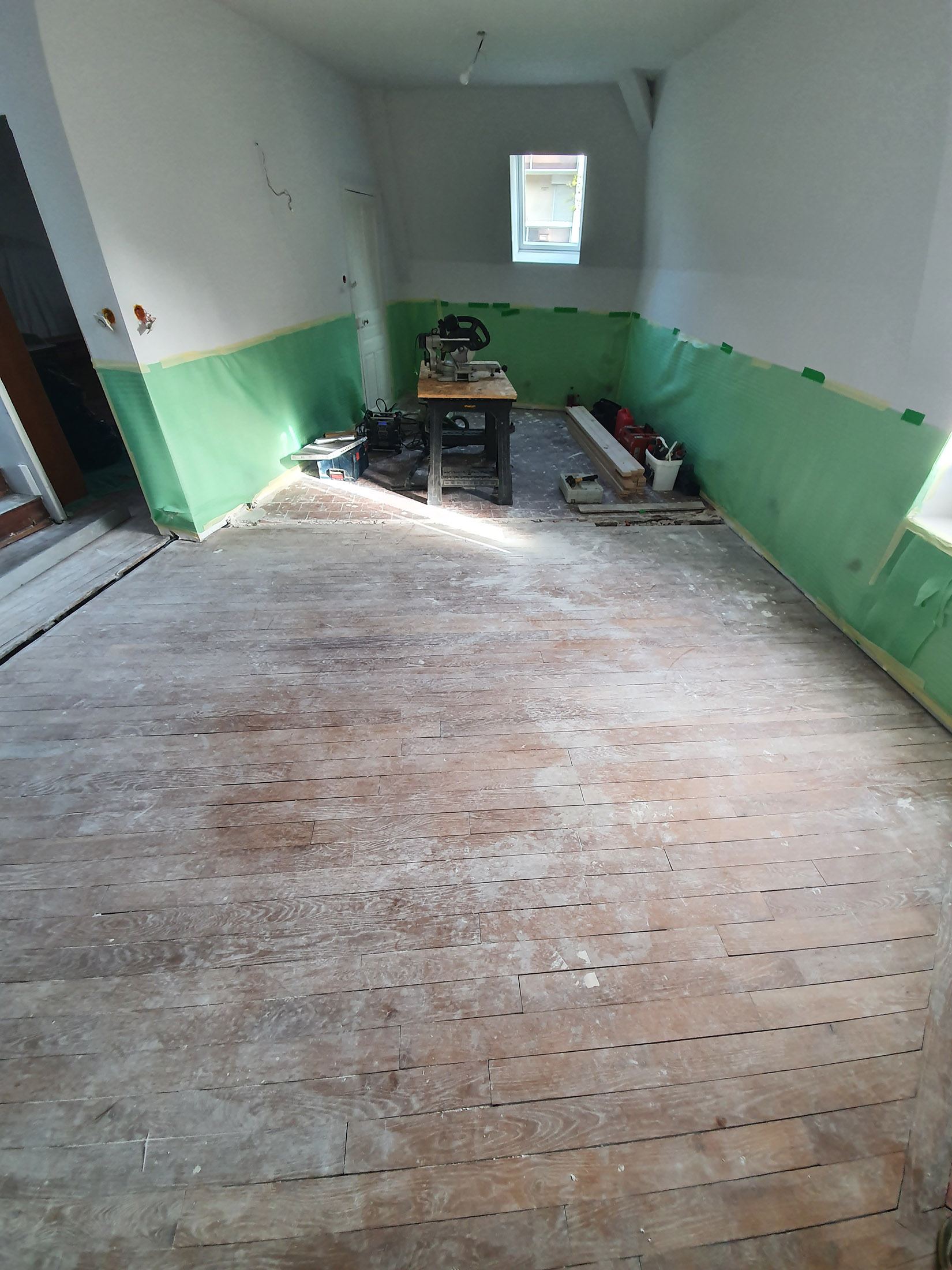 Recalage lambourde avec dépose et repose a l'identique d'un parquet en chêne massif