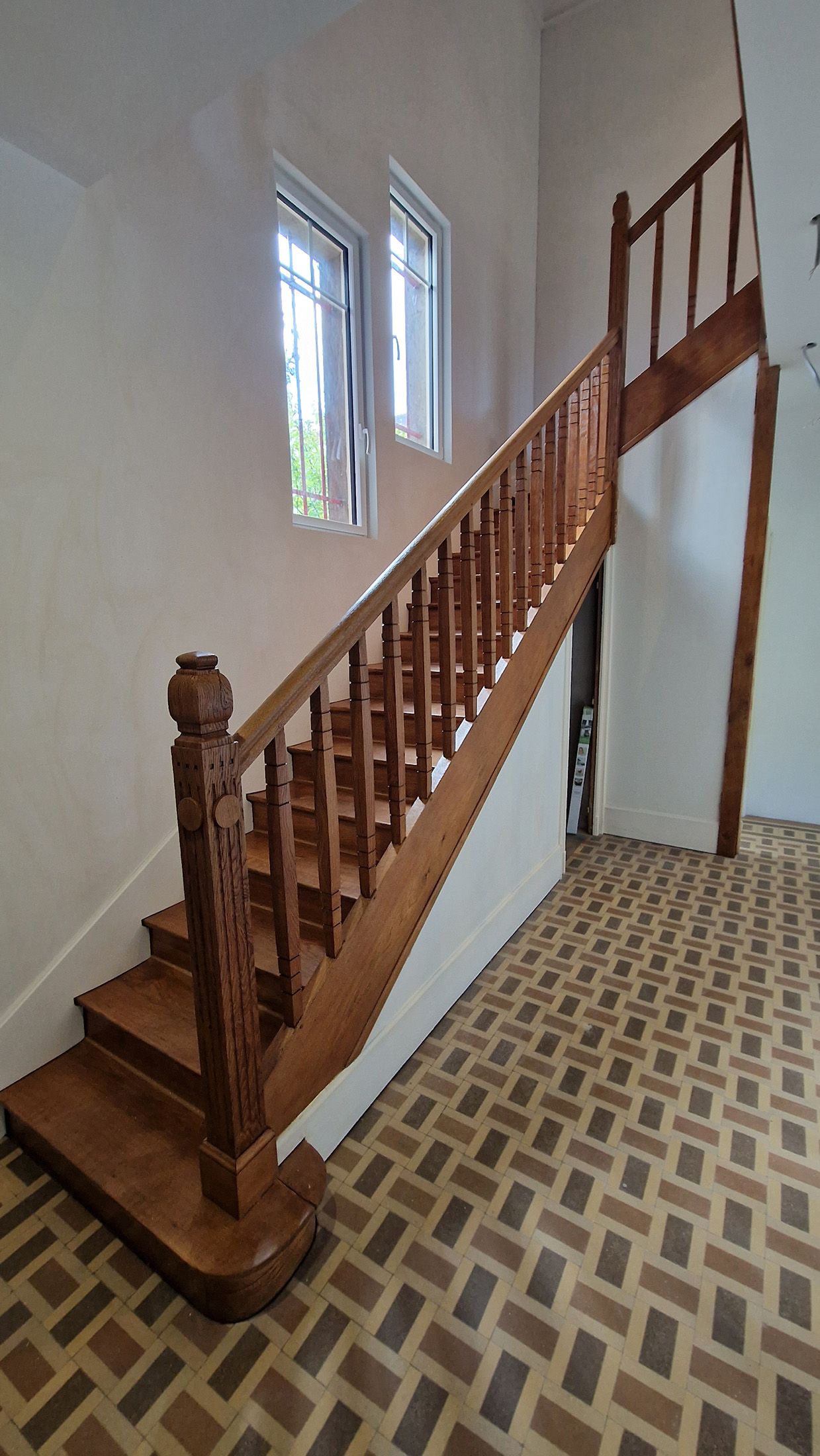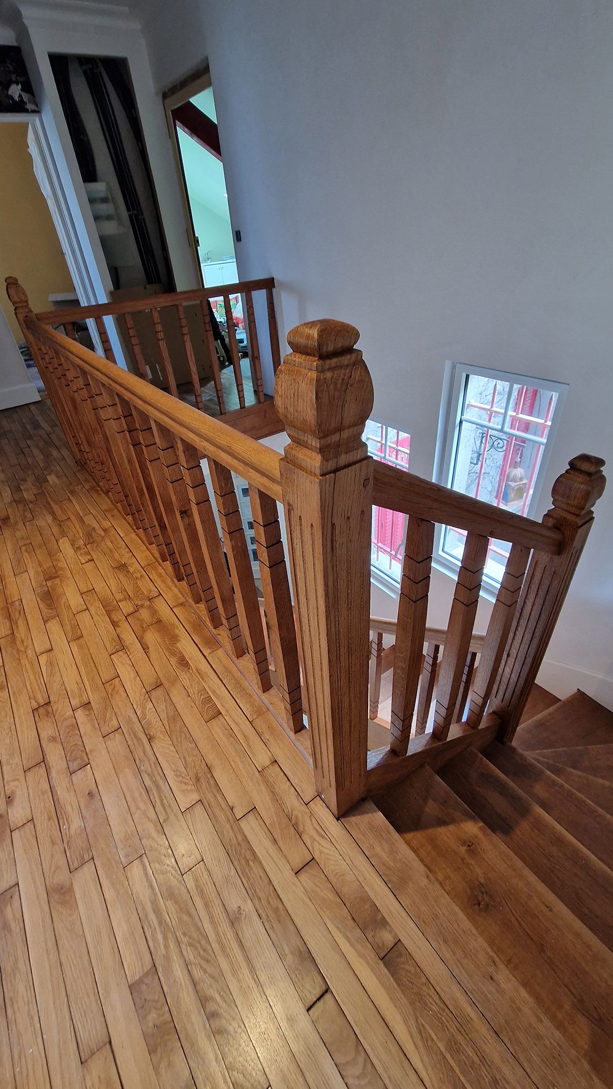 rénovation totale d'un escalier avec aérogommage puis ponçage et vitrification blanchon